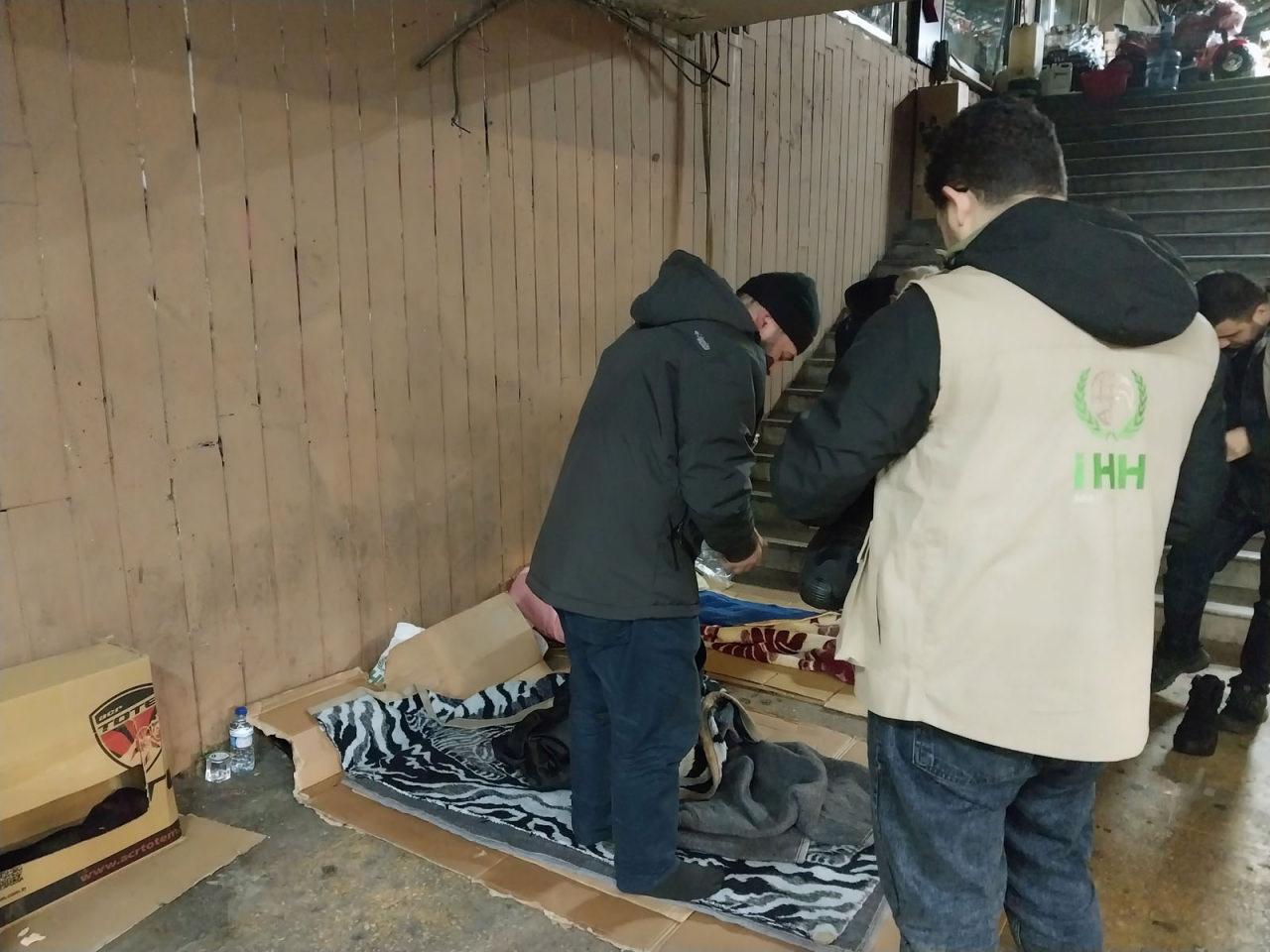 İHH İstanbul Sosyal Yardım Birimi tarafından sokakta kalan vatandaşlara yönelik yardım çalışması gerçekleştirildi. Çalışma çerçevesinde, bot, mont, battaniye, uyku tulumu ve konserve dağıtımı yapıldı.