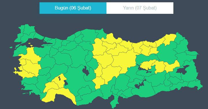 Meteoroloji tarafından Amasya, Antalya, Artvin, Balıkesir, Bingöl, Burdur, Çorum, Giresun, Gümüşhane, Isparta, İzmir, Kayseri, Manisa, Muş, Nevşehir, Niğde, Ordu, Rize, Samsun, Sivas, Tokat, Trabzon, Tunceli, Yozgat ve Bayburt için sarı kodlu uyarı verdi.
