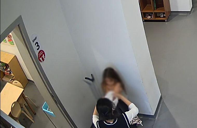 Skandal görüntülerden birinde, küçük bir kız çocuğunun sınıf kapısı önünde kıyafetinin değiştirildiği, çocuğun ise yaşadığı mahcubiyet nedeniyle elleriyle kendini kapatmaya çalıştığı anlar kameralara yansıdı.