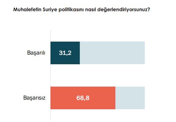 Ankete göre toplumun yüzde 68,8’i muhalefetin Suriye politikasını başarısız olarak değerlendirdi.