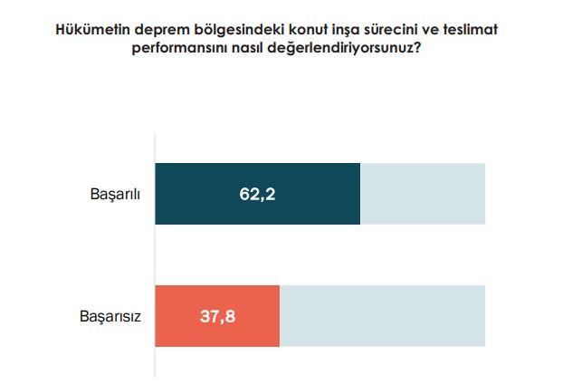 Araştırma sonuçlarına göre kamuoyunun yüzde 62,2’si hükümetin performansını başarılı bulurken, yüzde 37,8’i başarısız olarak değerlendirdi.