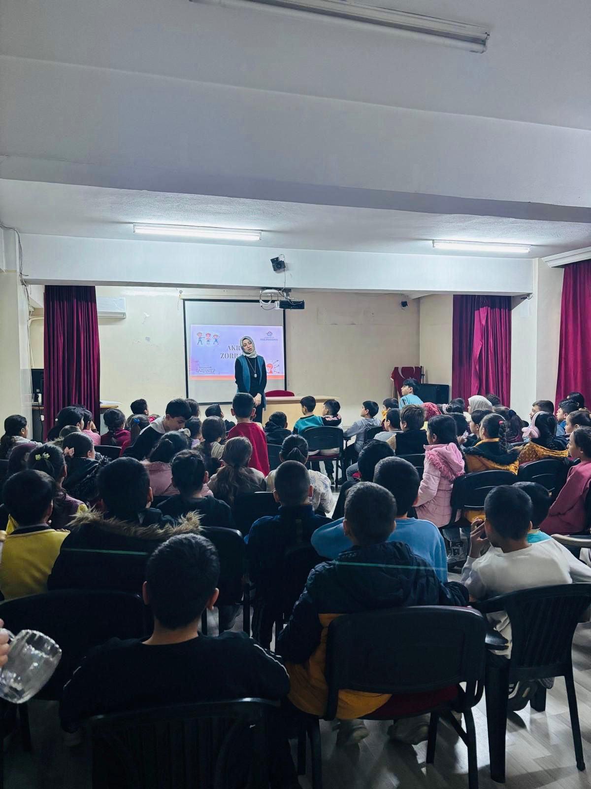 Gaziantep Büyükşehir Belediyesi Aile Akademisi uzmanları tarafından okullarda öğrencilere Akran Zorbalığı eğitimi veriliyor. Eğitimlerde zorbalığın tanımı, türleri, etkileri ve zorbalıkla baş etme yöntemleri ele alınarak öğrenciler bilinçlendirildi.
