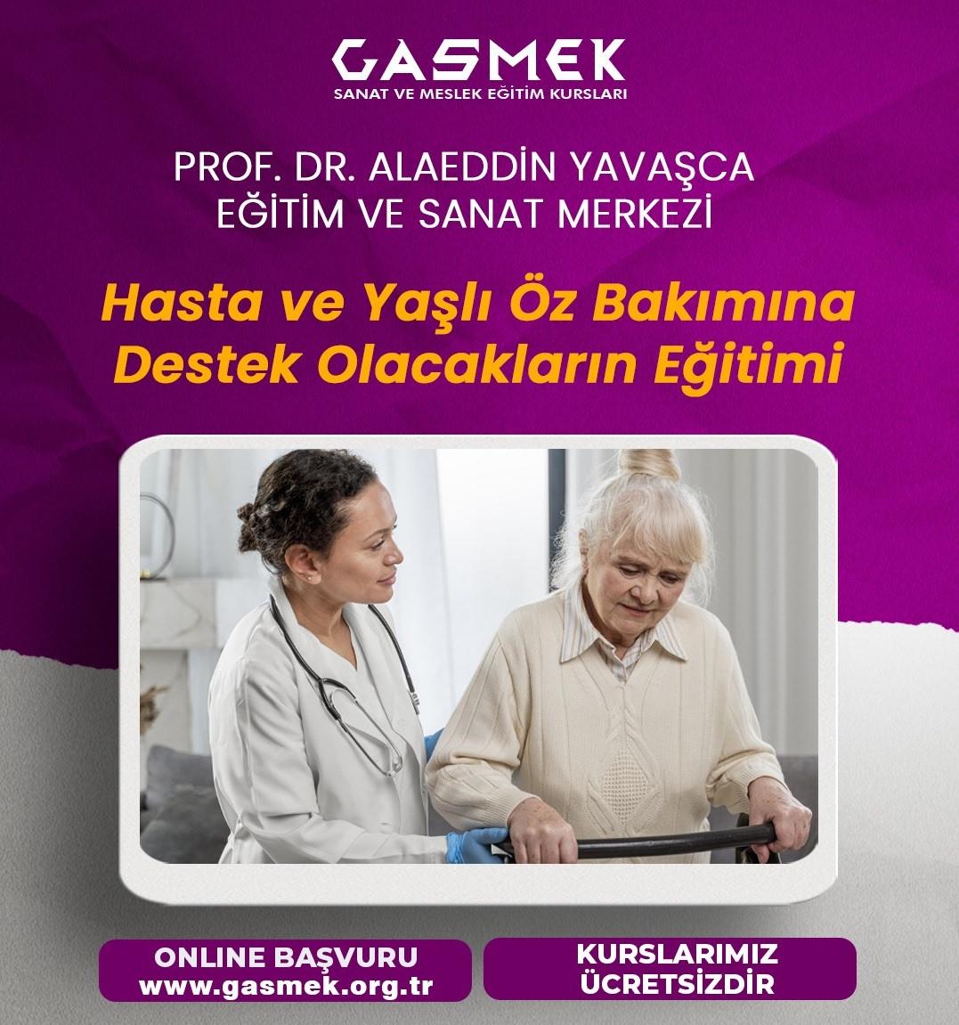 Gaziantep Büyükşehir Belediyesi Sanat ve Meslek Eğitim Kursları’na (GASMEK) bağlı GASMEK Prof. Dr. Alaeddin Yavaşca Eğitim ve Sanat Merkezi’nde Hasta ve Yaşlı Öz Bakımına Destek Olacakların Eğitimi başladı. Hasta ve yaşlı bireylerin öz bakım süreçlerinde destek olacak bireyler için hazırlanan eğitimlere ücretsiz katılmak isteyen vatandaşlar www.gasmek.org.tr adresinden başvuru yapabilecek.