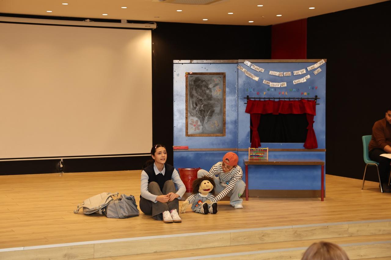 Çağın- Onur Kardeşler Anaokulunda gerçekleşen program kapsamında Gaziantep Kent Konseyi ve Şehir Tiyatrosu iş birliğinde anaokulunda düzenlenen deprem konulu “Yer Bir Şey Söylüyor” isimli çocuk tiyatrosu sahnelendi.