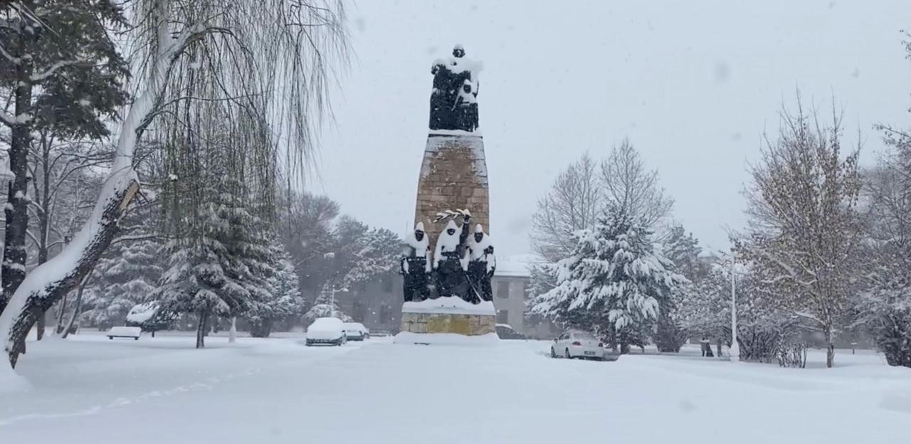 Erzincan'da gece başlayan kar yağışı kent merkezini beyaza bürüdü. 524 köy yolunun ulaşıma kapandığı kentte, İlk ve orta dereceli okulların ardından Erzincan Binali Yıldırım Üniversitesi’nde de eğitime 1 gün ara verildi.