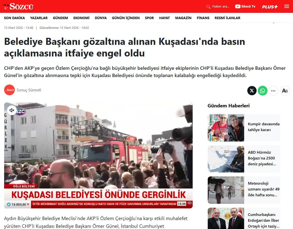 CHP’ye yakınlığıyla bilinen Sözcü gazetesinin Kuşadası’nda yaşanan olay üzerinden servis ettiği “İtfaiye basın açıklamasını engelledi” iddiası kısa sürede çöktü.