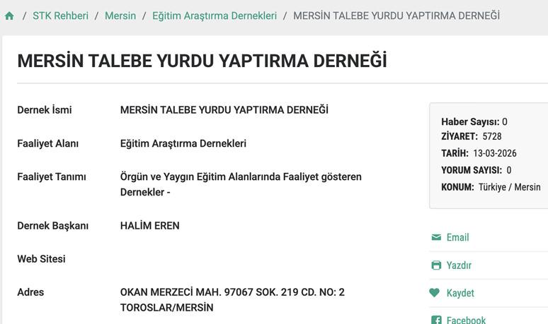 Halim Eren aynı zamanda Mersin Talebe Yurdu Yaptırma Derneği’nin başkanlığını da yürütüyor. Toroslar ilçesi Akbelen mahallesindeki Özel Akbelen Ortaöğretim Erkek Öğrenci Yurdu da bu derneğe bağlı faaliyet yürütüyor. Yerel kaynaklar, yurdun uzun süredir cemaate bağlı çalıştığını ve burada kalan öğrencilerin de cemaat üyesi olduğunu belirtiyor.
