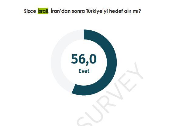 Toplumun yüzde 56’sı sıranın İran’dan sonra Türkiye’ye gelebileceğini düşünürken 44’lük bir kesim ise Türkiye’yi hedef alamayacağı kanaatinde.