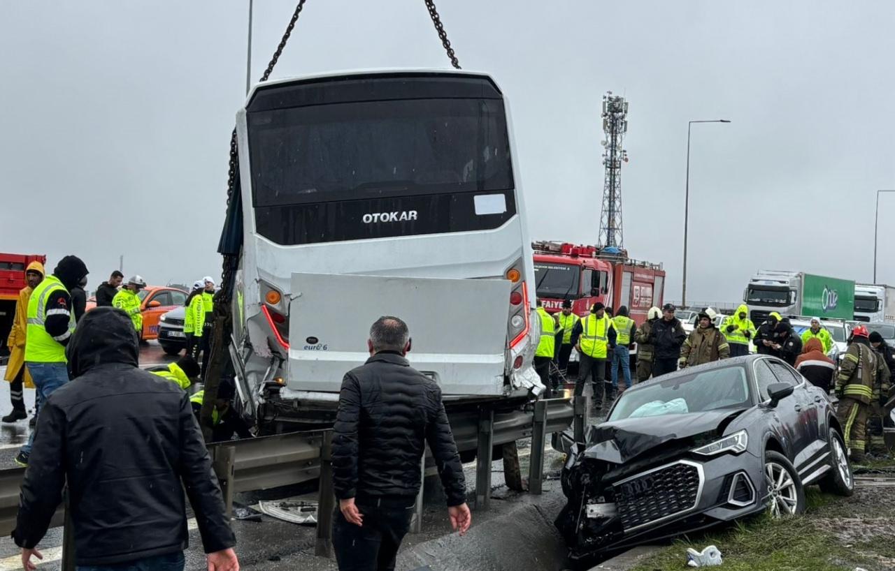 Başakşehir, Kuzey Marmara Otoyolu Fenertepe mevkiinde sabah saatlerinde polisleri taşıyan servis aracının da aralarında olduğu zincirleme kaza meydana geldi.