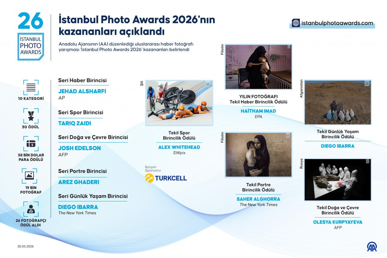 Anadolu Ajansının (AA) düzenlediği uluslararası haber fotoğrafı yarışması "İstanbul Photo Awards 2026"nın kazananları belirlendi.