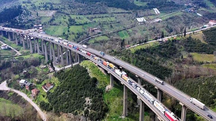 Kocaeli'de TEM'de 2 TIR ve 2 otomobilin çarpıştığı bir kaza meydana geldi. Kaza sonrası TEM'de uzun kuyruklar dron ile görüntülendi.