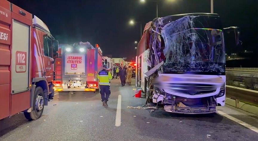 SON DAKİKA HABERİ: Kuzey Marmara Otoyolu Çekmeköy mevkisinde seyir halindeki 35 CKH 086 plakalı yolcu otobüsü, aynı yönde ilerleyen 06 COC 097 plakalı tıra arkadan çarptı.