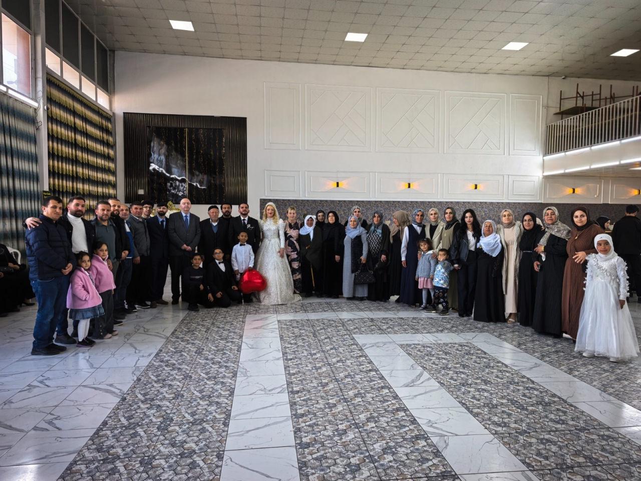 Van’daki bir düğün salonunda gerçekleştirilen törene çiftin yakınları ve çok sayıda davetli katıldı. Renkli görüntülere sahne olan düğünde davetliler, Kürtçe ve Türkçe müzik eşliğinde halaylar çekti.
