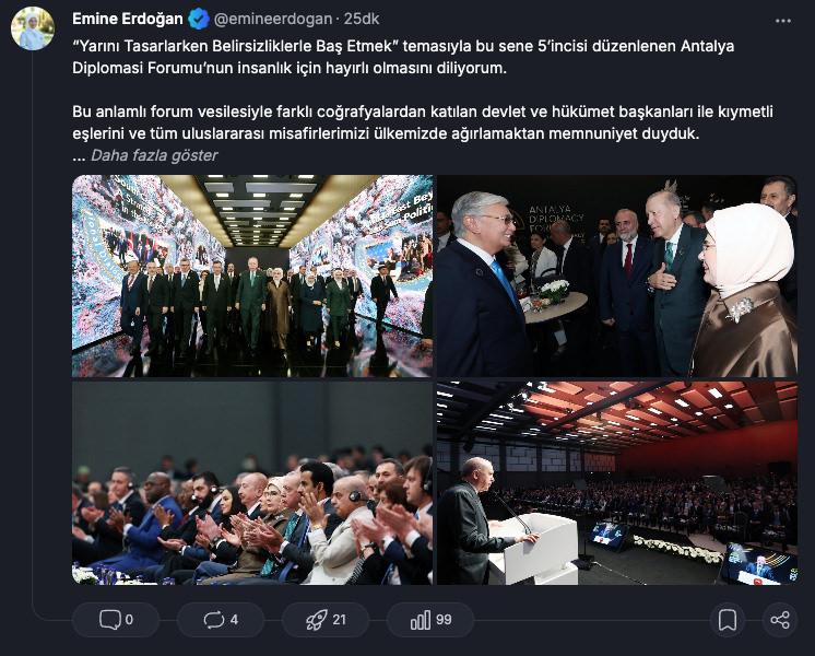 Emine Erdoğan'dan Antalya Diplomasi Forumu paylaşımı