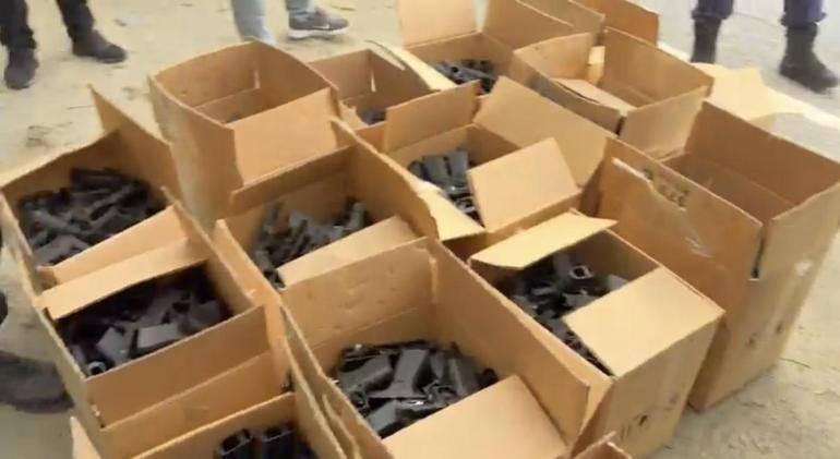 Kamyonetteki aramada 1021 adet 9 milimetre çapında tabanca, 632 adet tabanca gövdesi, 632 adet tabanca üst kapağı ele geçirildi.