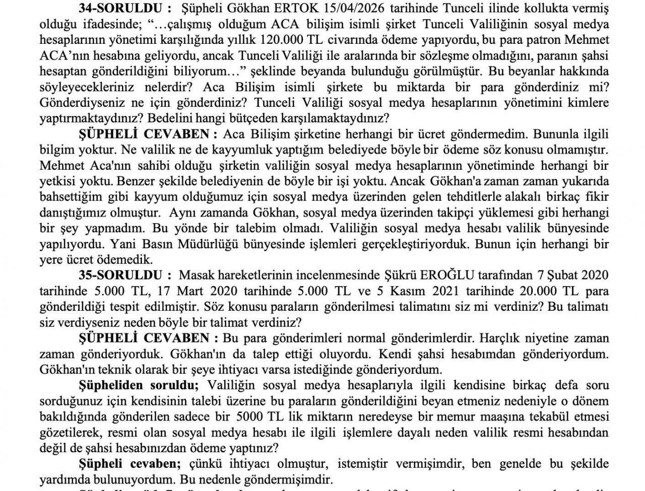 Soruşturma makamı ise yalnızca birkaç kez sosyal medya ve teknik destek kapsamında görüşüldüğü söylenen bir kişiye neden şahsi hesaptan para aktarıldığını doğrudan sorguladı. Resmi bir kamu işi için neden resmi bütçe kullanılmadığı sorusuna Sonel’in verdiği yanıt, dosyadaki kuşkuları gidermekten uzak bir savunma görüntüsü verdi.