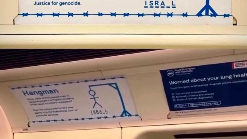 Londra metrosundaki trenlerde çocuk oyunu olan “Adam asmaca” temalı reklam broşürleri asıldı. Yahudiler afişlere tepki gösterirken reklam metninde ise, "Hangi ülke yakın zamanda yasadışı olarak işgal ettiği insanları asmak için bir yasa çıkardı?" sorusu soruluyor.