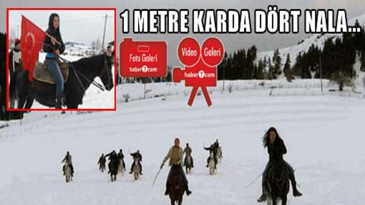 Artvin'in Şavşat ilçesine bağlı Pınarlı köyünde yaşayan kızlar, at biniciliğinde erkeklerden geri kalmıyor. 1 metre karın üstünde at koşturan kızlardan üçü, 20 binicili yarışı birinci bitirdi... İşte o anların yürek hoplatan görüntüsü: