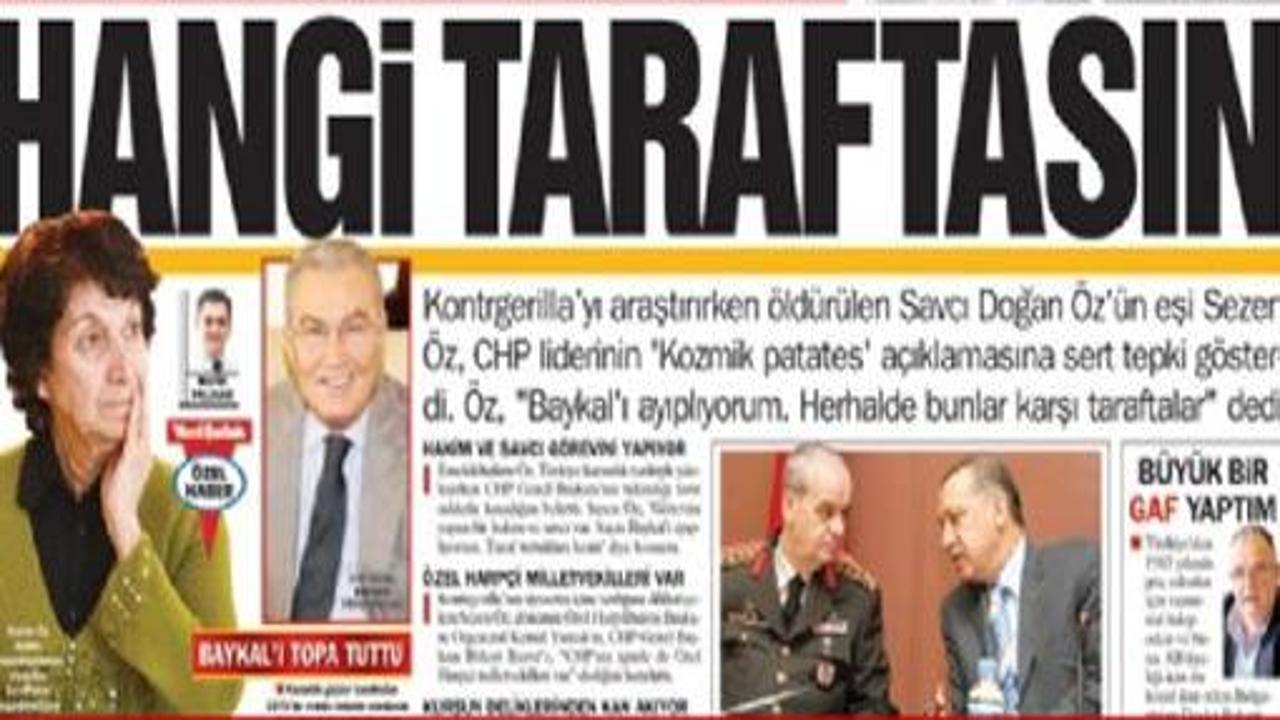 Kontrgerilla'yı araştırırken öldürülen Savcı Doğan Öz'ün eşi Sezen Öz, Seferberlik Tetkik Kurulu'ndaki aramayla 'Kozmik odadan patates çıktı' diyerek dalga gecen CHP lideri Baykal'a tepki gösterdi.