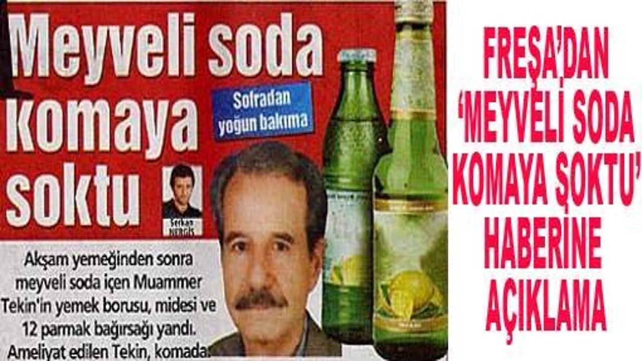 "Meyveli soda organları yaktı', 'Meyveli sodadan ölüme yargı yolu', 'İç yakan sodaya bakanlık el koydu' başlıklı haberlere Freşa'dan açıklama geldi. İşte o açıklama: