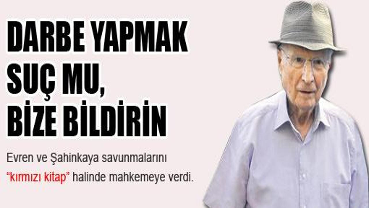 Evren ve Şahinkaya mahkemeye, “Darbe yapmak suç mu bize bildirin” çağrısında bulundu. Darbenin geride kalan iki ismi Evren ve Şahinkaya, “Uygar ülkelerde kurucu iktidar olmak fiilini cezalandıran bir hükme rastlanmış değildir” dedikleri savunmalarında, “İhtilalleri ahlaki bulmamak başka şeydir, ihtilalleri yargılamaya kalkışmak başka şeydir. Buna restorasyon denmektedir. Bu, öğretide ihtilalcinin bir başka ihtilalci tarafından yargılanmasıdır” görüşünü dile getirdi. Toplam 160 sayfadan oluşan ve “kırmızı kitapçık” halinde sunulan savunmada, açılan davadamahkemenin “yetkisiz” olduğu belirtilerek, iddianame ve yargılama için “Herhalde bu Türk icadıdır” denildi.