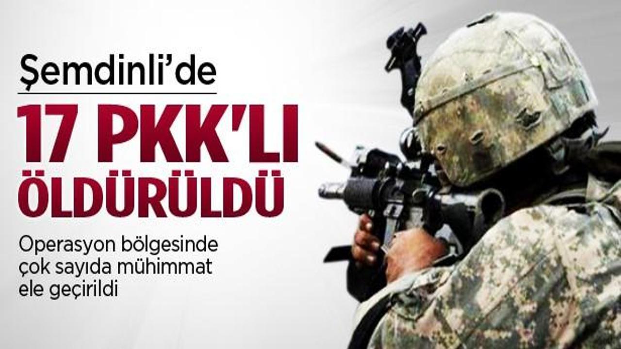 Hakkari'nin Şemdinli İlçesi'nde güvenlik güçleri ile PKK'lılar arasında çıkan çatışmalarda, 17 terörist öldürüldü. Operasyonda terör örgütüne ait çok sayıda mühimmat ele geçirildiği de belirtildi.
