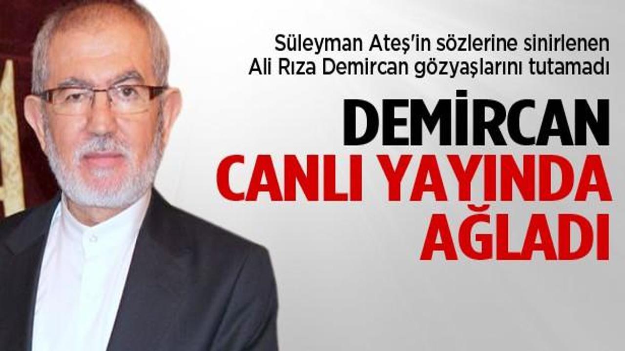 Ersoy Dede'nin Süleyman Ateş'in "Şayet cinsel yaşamla mertebe alınacak olsaydı, eşekler insanlardan daha yüksek mertebeye çıkardı" sözlerini hatırlatması üzerine sinirlenen Demircan, cevap verirken gözyaşlarını tutamadı:
