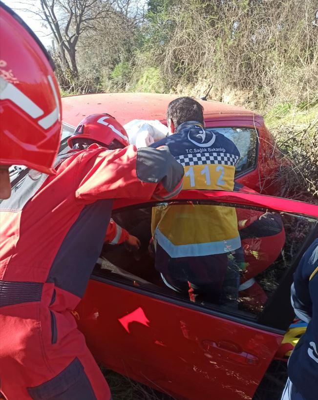 Metrelerce savrulan otomobil dere yatağında ağaca çarparak durabildi. Kazayı görenlerin ihbarı üzerine bölgeye sağlık ve itfaiye ekipleri sevk edildi.