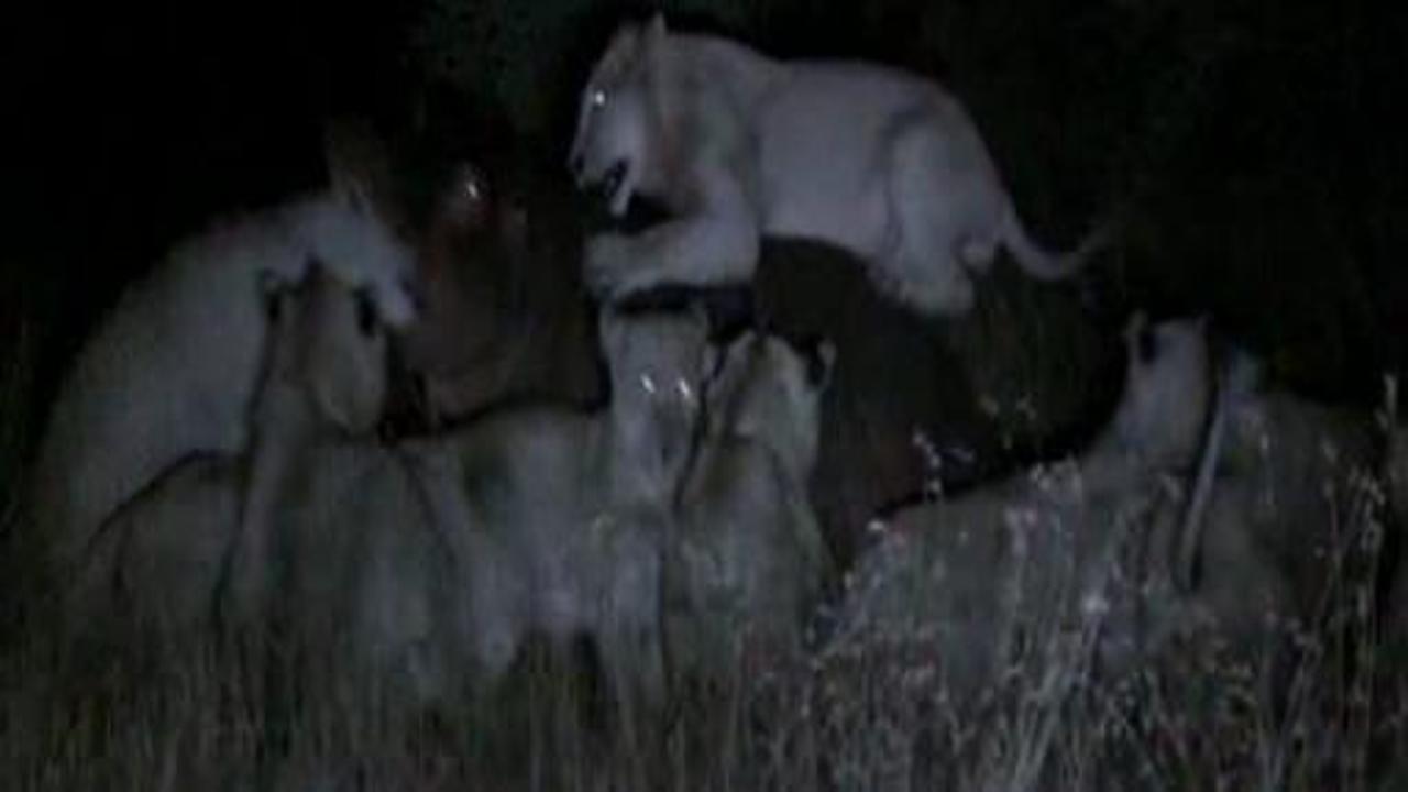 Ormanda avlanan aslan sürüsü aralarına aldıkları hipopotamı parçalamak için pençelerinden geleni dişlerinden esirgemediler ama hipopotam pes etmedi!