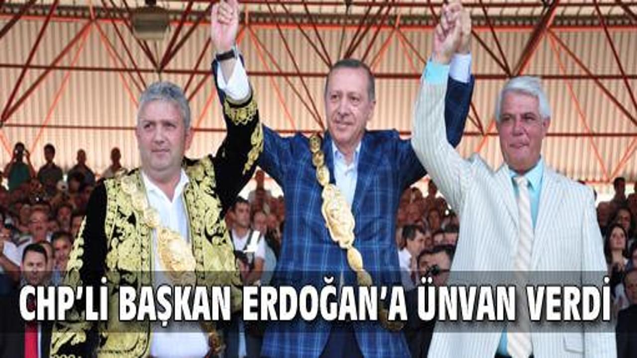 Tarihi Kırkpınar Yağlı Güreşleri’ni izlemek üzere Sarayiçi'ne gelen Başbakan Recep Tayyip Erdoğan’a Edirne Belediye Başkanı Hamdi Sedefçi tarafından altın kemer takıldı.