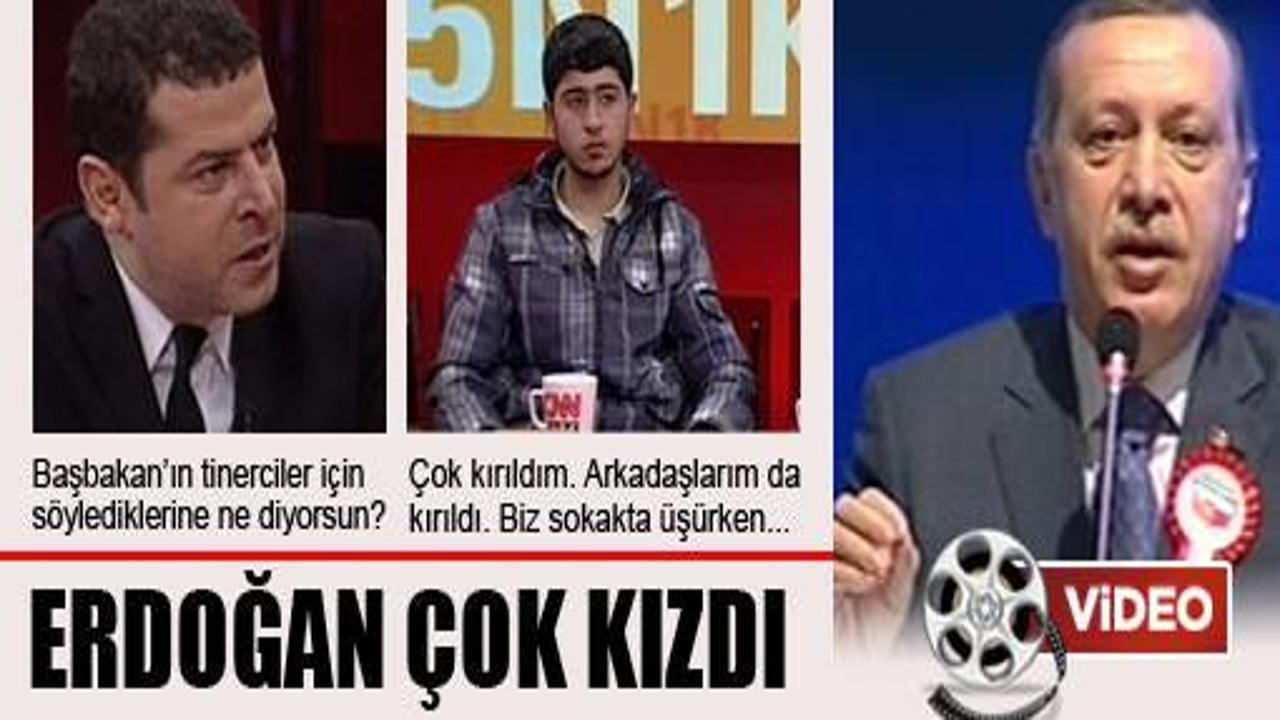 'Dindar nesil' gündemi 'tinerci çocuk' tartışmasına dönüştü. Erdoğan, dünkü sözlerinden sonra tinerci bir çocuğu yayına çıkaran Cüneyt Özdemir'e çok sert tepki gösterdi.