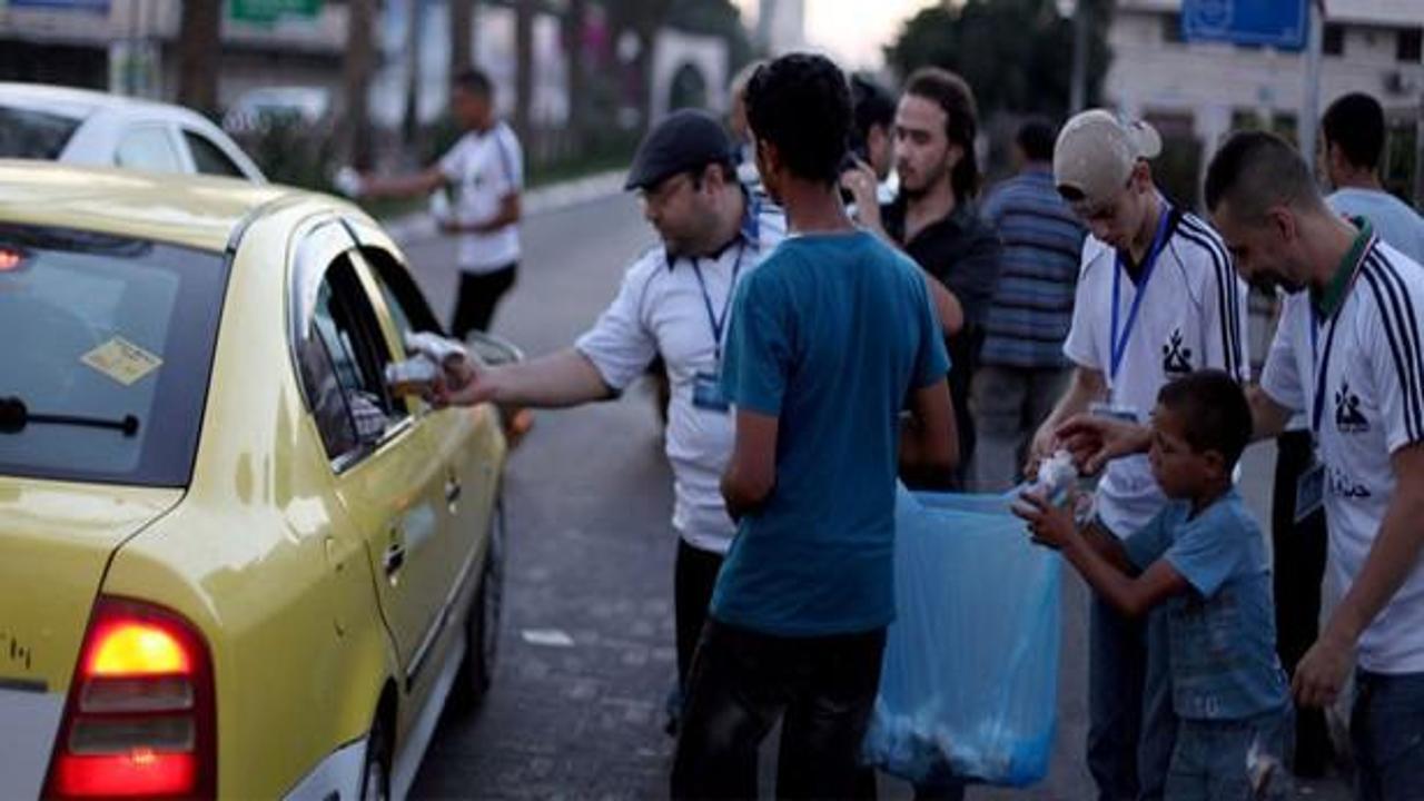 Gazze'de 100'e yakın gönüllü genç iftar saatinde yolda kalanlara minik iftariyelikler dağıtıyor.