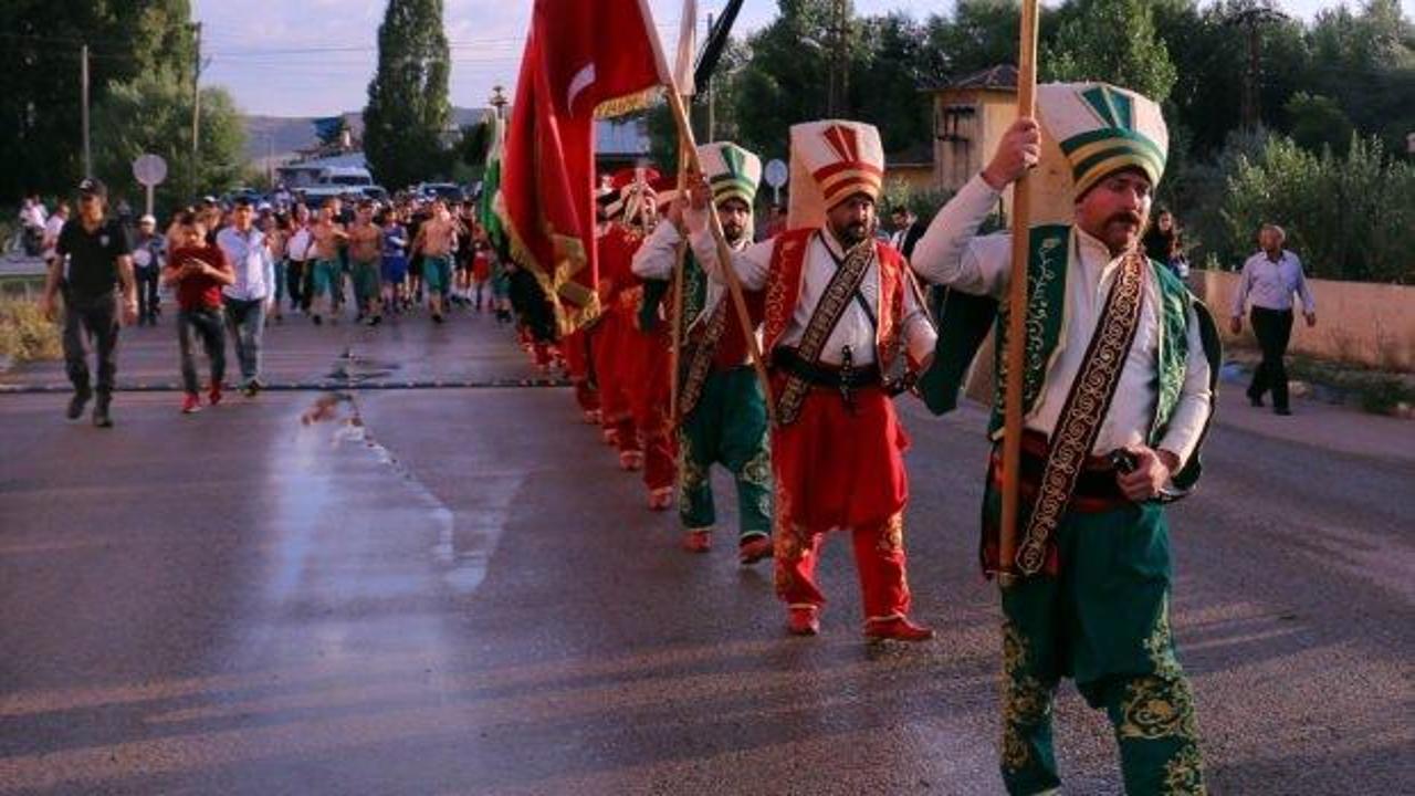 Ilıca Şehitlik Anıtı önünde bir araya gelen güreşçiler ile Termal Spor Kulübü boks ve kickboks takımı, Erzurum Büyükşehir Belediyesi Mehteran Takımı eşliğinde yürüyüş yaptı.