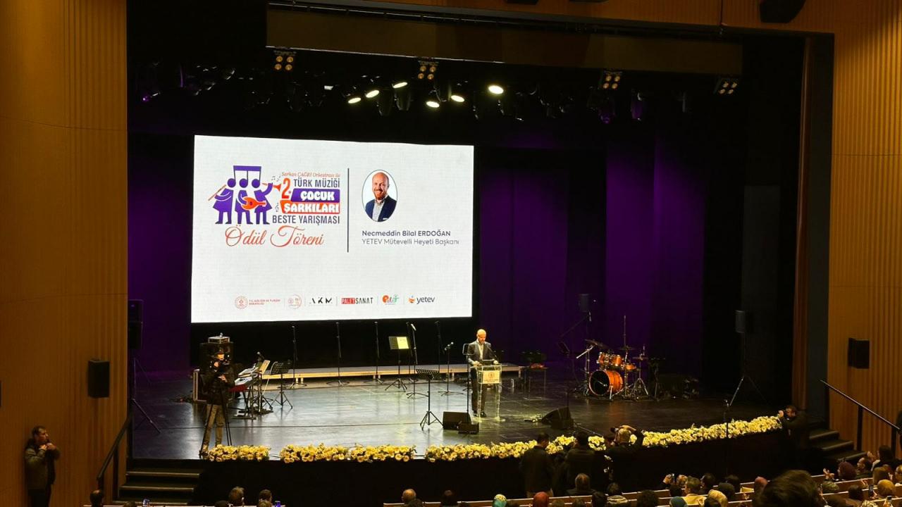 Yeni Türkiye Eğitim Vakfı (YETEV) ile Kültür ve Turizm Bakanlığı işbirliğinde düzenlenen 2. Türk Müziği Çocuk Şarkıları Beste Yarışması’nın ödülleri Atatürk Kültür Merkezi’nde verildi.