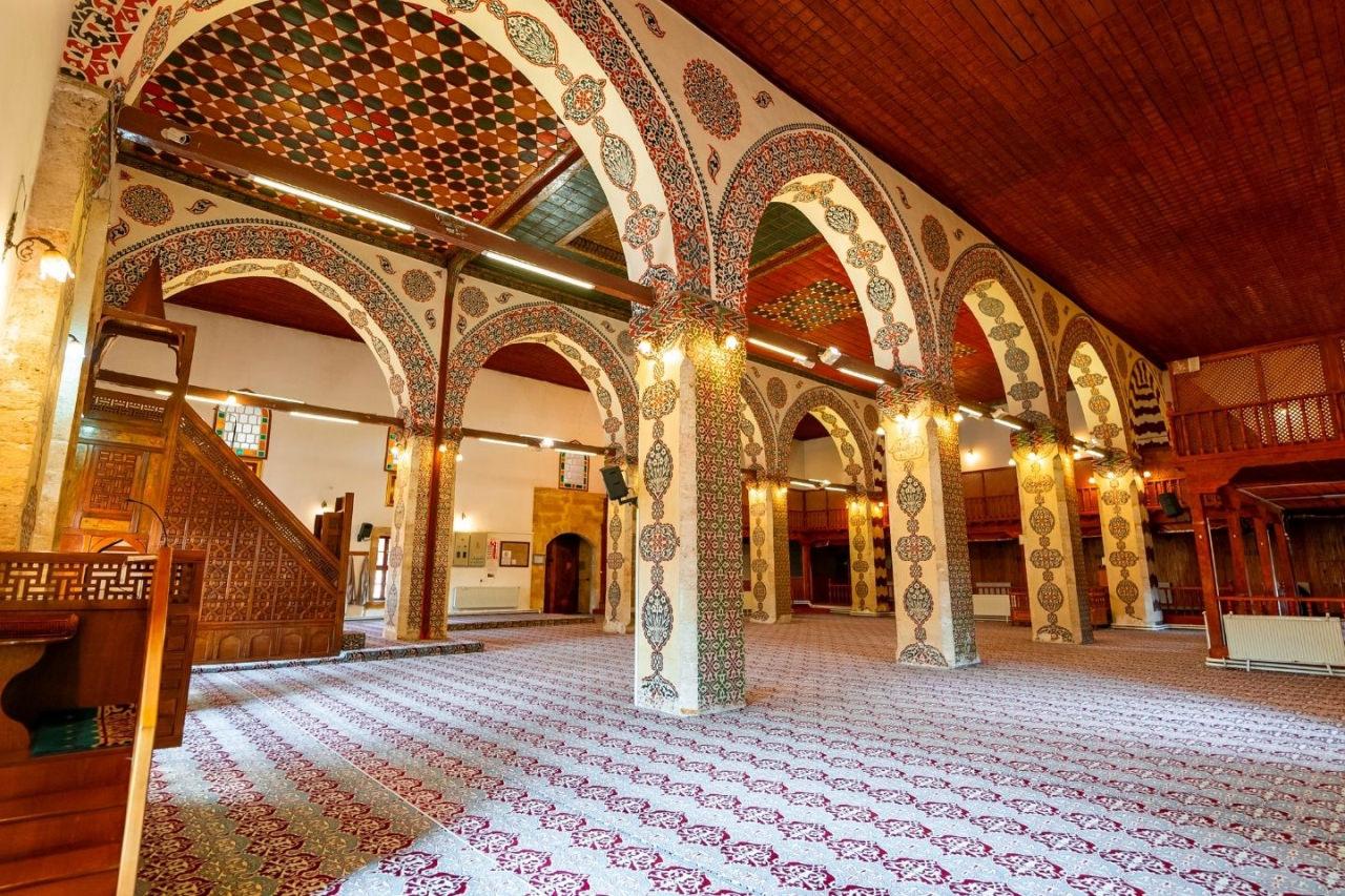 Güneydoğu köşesindeki taşa oyulmuş, kuş evi Anadolu’da nadir olarak görülür. Caminin harimi ahşap tavan ile örtülmüş ve tavana kırmızı ve yeşil renklerin hakim olduğu fonlar arasında yalancı kündekari tekniğiyle yapılmış kare tavan göbeğinin üzeri altın yaldız ve kalem işi bitkisel bezemelerle süslenmiş.
