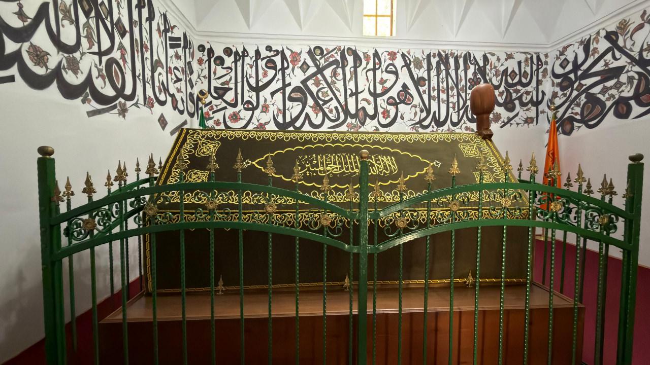 Özellikle türbede dikkat çeken detay ise kubbeye geçiş sisteminin hemen altında doğu, batı ve güney duvarlarını geniş bir yazı kuşağı bulunması. Burada Yunus suresi 62. ayet ile Ali İmran suresi 18. ayeti yer alıyor.