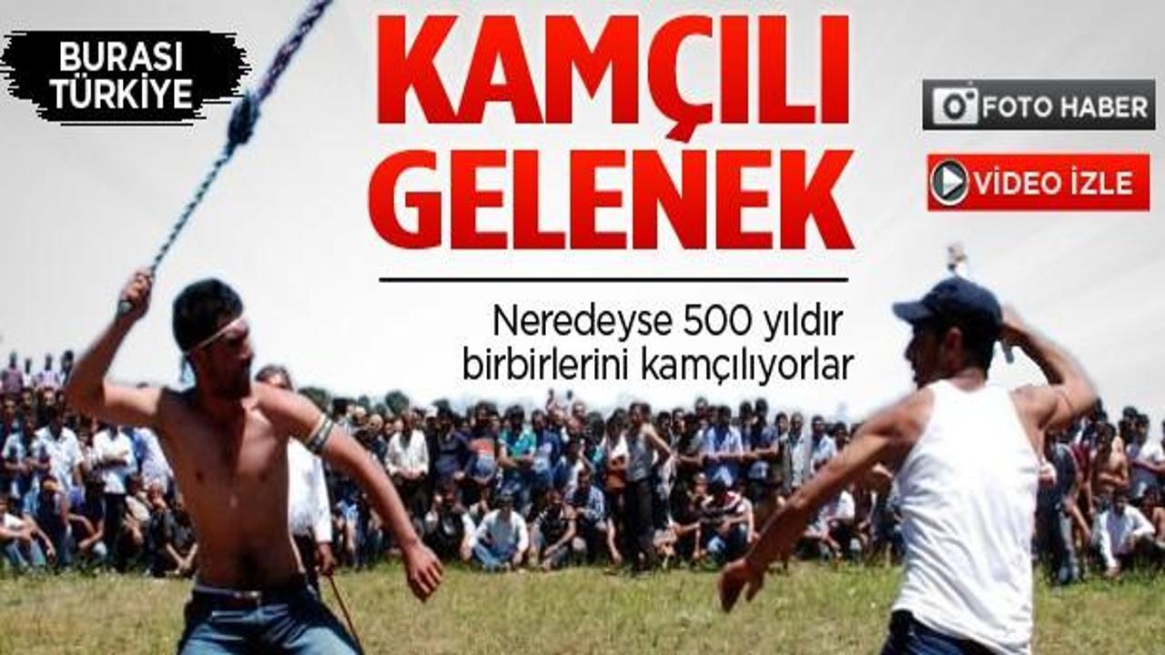 Durabeyli köyündeki kamçı şenliğinde 100'ü aşkın kişi, adeta güç gösterisi yaptı. Önceden hazırladıkları kalın iplerden yapılan kamçılarla dakikalarca birbirlerine vurdular.