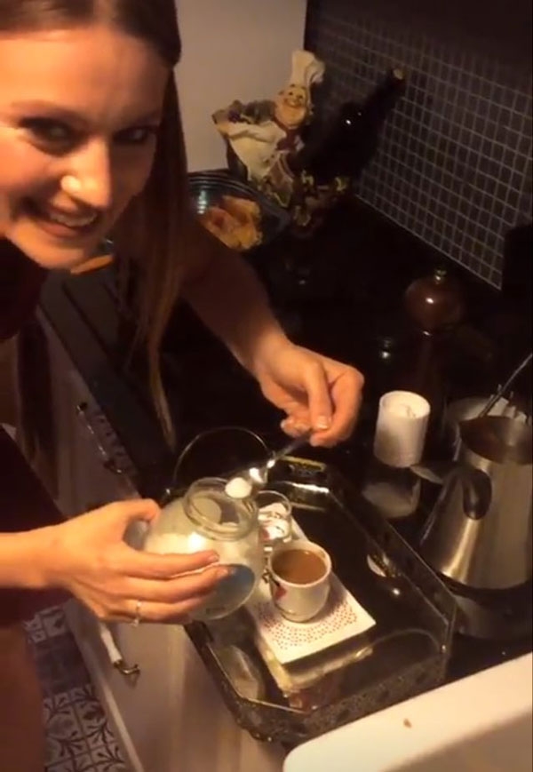 Güzel oyuncu, Ekmekçi'ye isteme törenlerininde tuzlu kahve ikram etti. Karaca'nın tuzlu kahvesi ve yüzük merasimi fanları tarafından sosyal medyada paylaşıldı.