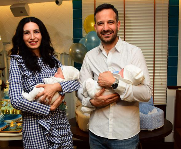 Ünlü çift ikiz bebekleri Ares ve Milan’la poz verdi.
