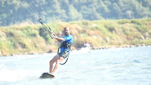 Ünlü oyuncu Engin Altan Düzyatan, uçurtma sörfü yaparken rüzgarın sert esmesi yüzünden neredeyse kayalıklara çarpacaktı.