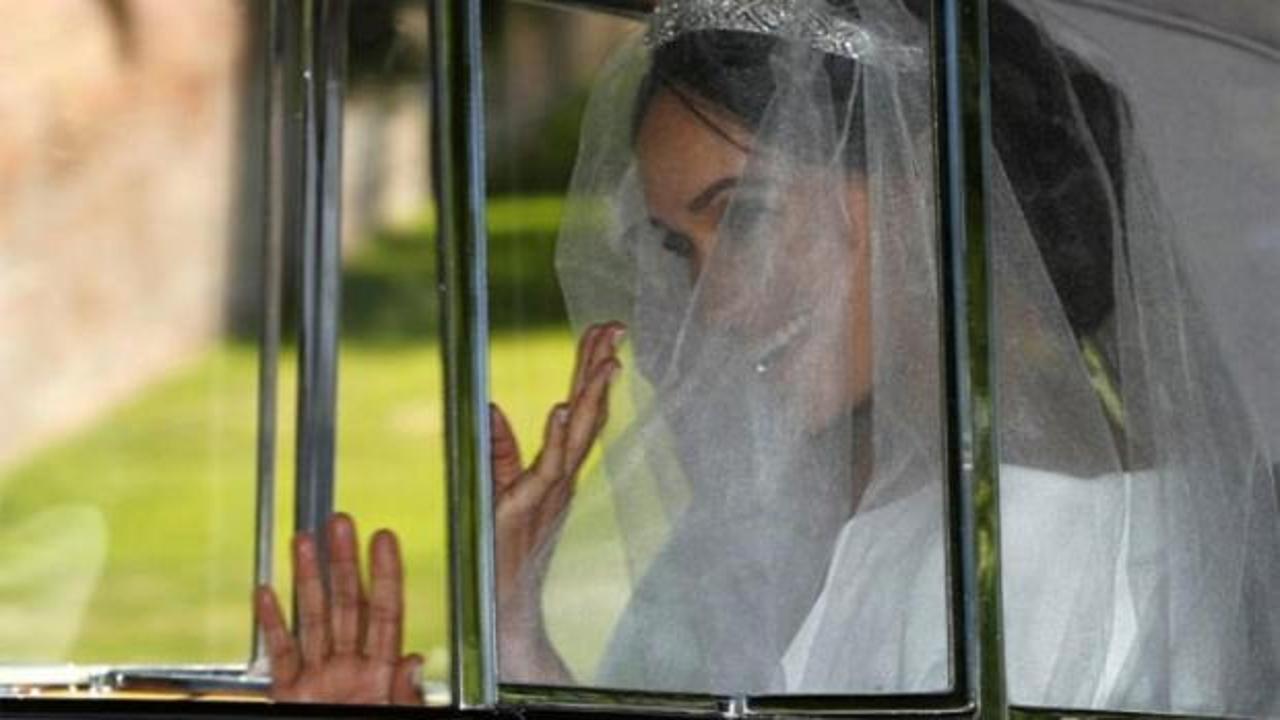 Uzun saçlarını ensesinde toplayan Meghan Markle'ın duvağındaki taşlı taç göz doldurdu.