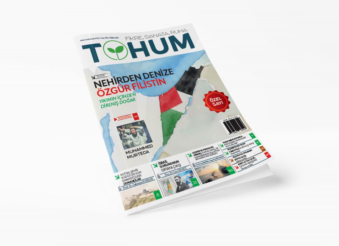 Fikre, sanata ve ruha hitap eden Tohum Dergisi, 176. sayısında Filistin meselesini merkeze alan kapsamlı bir özel dosya ile okuyucularıyla buluştu. “Nehirden Denize Özgür Filistin-Yıkımın İçinden Direniş Doğar” başlığıyla yayımlanan bu özel sayı, Filistin’i yalnızca güncel bir kriz alanı olarak değil; tarihsel, siyasî, psikolojik, hukukî, kültürel ve manevî boyutlarıyla ele alan çok yönlü bir perspektif sunuyor.