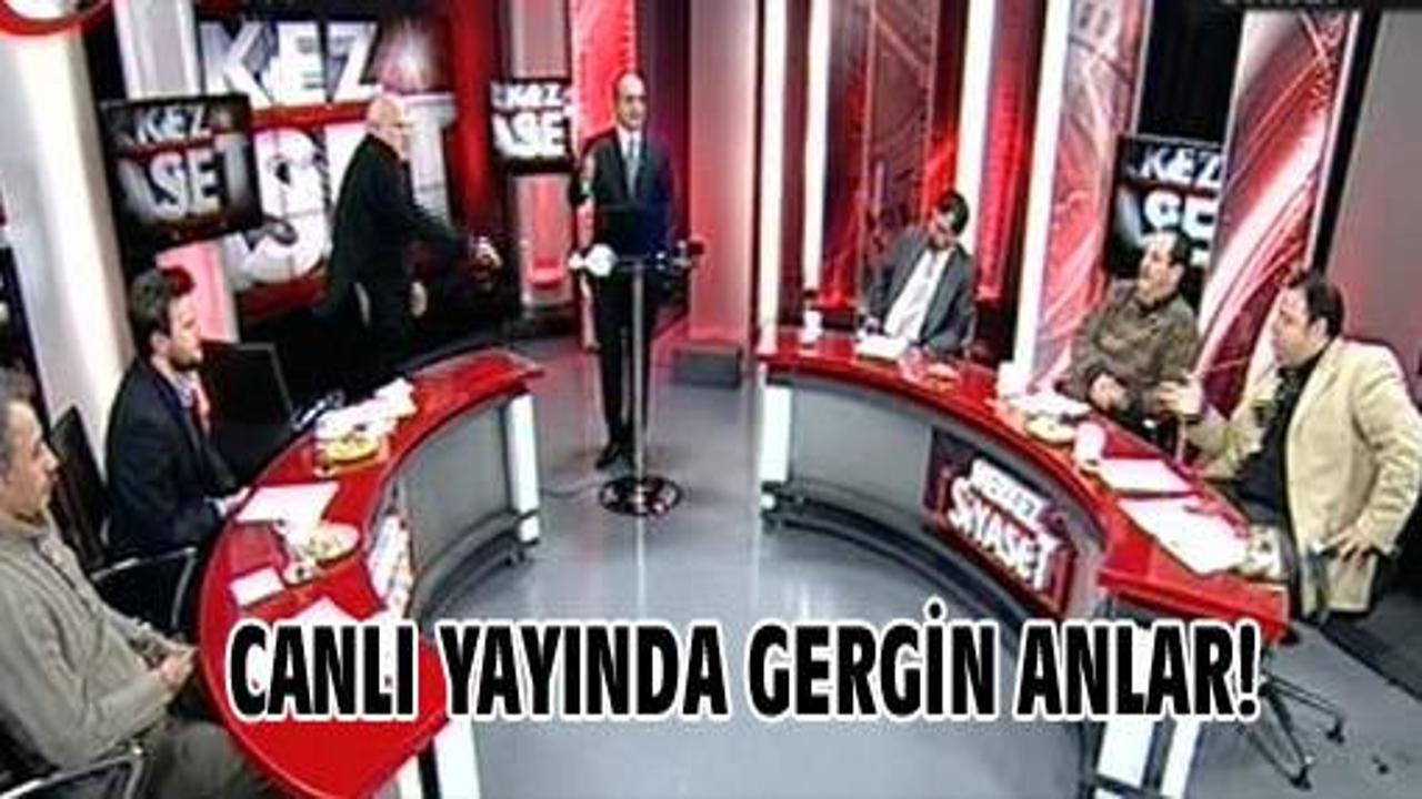 Kıyafetinde takılı olan mikrofonu Nuh Gönültaş'a atan Mehmet Tanrıseven 'Edepsiz, terbiyesiz... ' diyerek bağırmaya başladı.