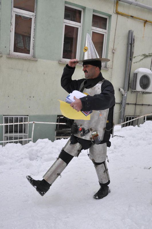 Kütahya'da bir süre önce postacıların sorunlarını gündeme getirmek amacıyla kısa metrajlı film çektirip bunu sosyal paylaşım sitesinde yayınlayarak ilgi toplayan 44 yaşındaki Nevzat Çoban, bu kez yıpranma haklarının verilmemesine tepki olarak sacdan yaptırdığı ve 'Bela savar' adını verdiği zırhı giyerek mektup dağıttı.