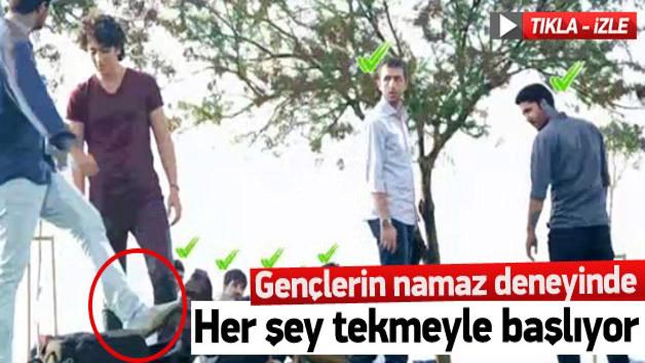 Namaz kılmaya engel olmaya çalışan genç, parktaki iki kişi tarafından çok sert bir şekilde uyarılıyor. İslami konularda önemli sosyal araştırmalar yapan İzmir merkezli Sözler Köşkü İlim ve Kültür Derneği'nin hazırladığı deneyin ikinci aşamasındaki tepkiler ise anlamlı ve sert. Namaz karşıtı genç seccade olarak serilen hırkaya tekme atıyor.