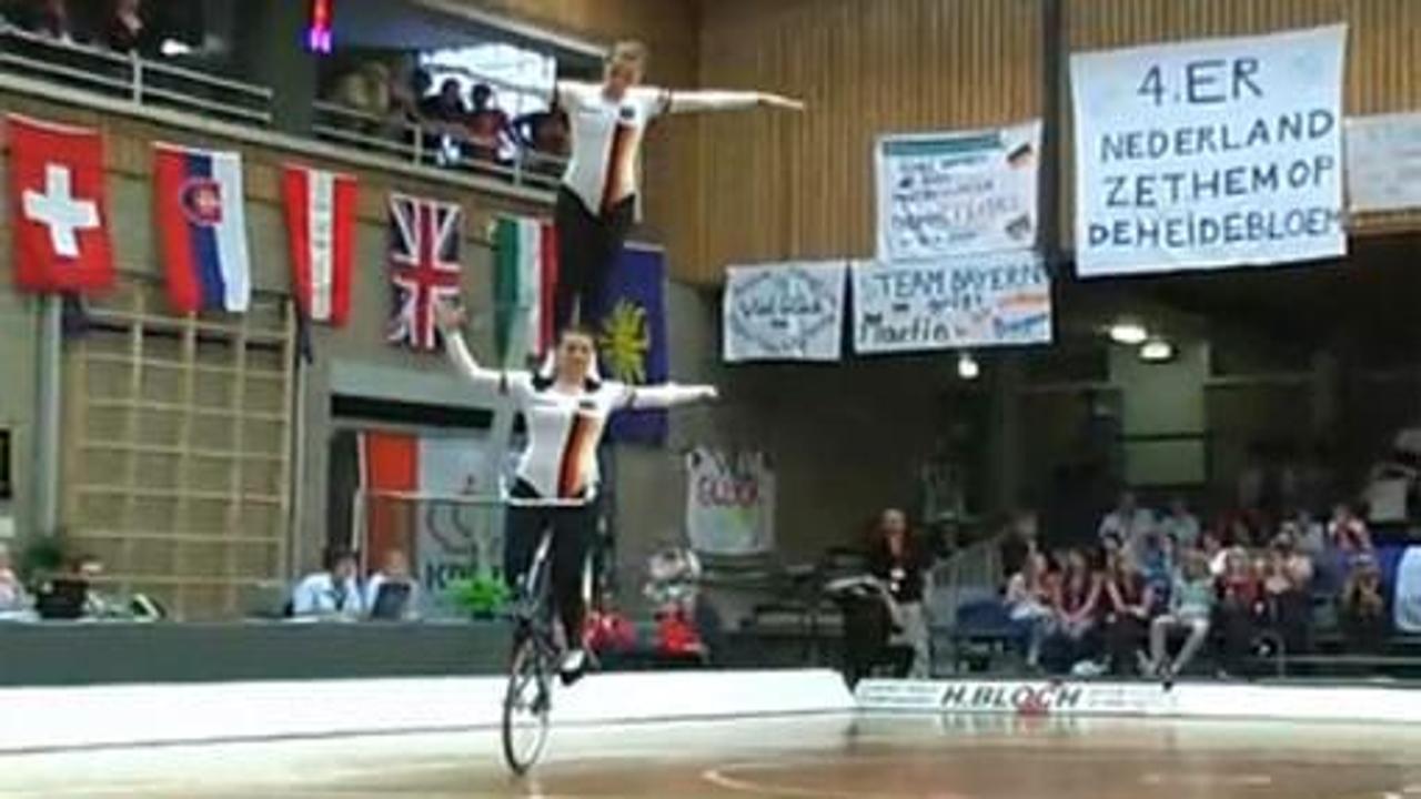 Adeta bisikletle dans eden genç kızlar, yapılması zor hareketleri ustalılakla yaparak salonu dolduran kalabalığı hayretler içinde bıraktı. Gösteri sonunda birinci olan Alman ekibi dakikalarca alkışlandı.