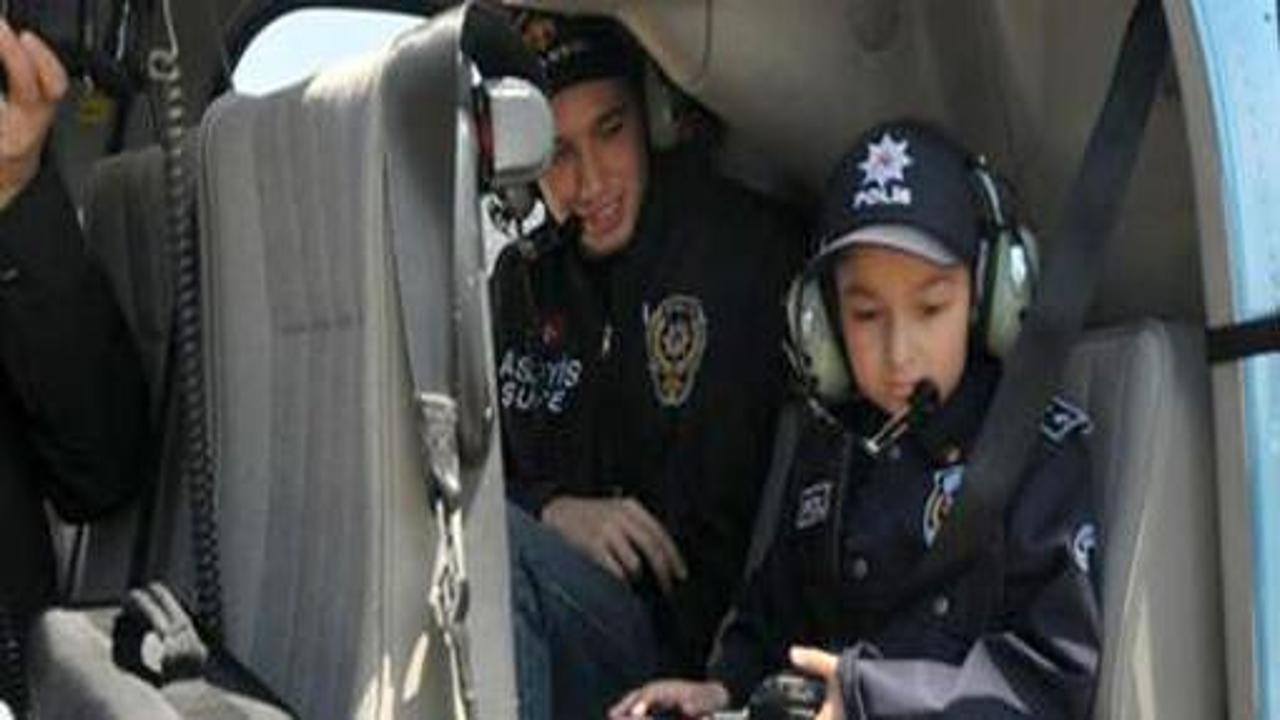 Hastalıklarla savaşan miniklere psikolojik destek için gönüllü kuruluşların desteğiyle yürütülen Dünya Dilek Günü kutlamaları, minik bir çocuğun başkomiserlik dileğini yerine getirdi. Minik başkomiser, polis büyükleriyle tanıştıktan sonra hem devriyeye çıkıp suçluları kovaladı hem de helikopterle havadan suçlu izi sürdü.