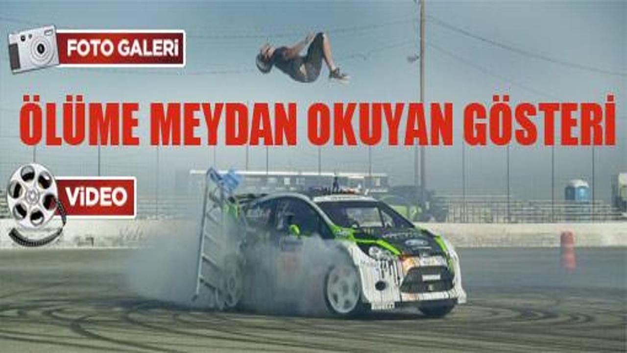 Dünyaca ünlü drift yarışçısı Ken Block ile BMX sporcusu Kelly Bolton tehlikeli bir gösteri yaptı. Bolton, Block'un çarptığı merdivenin üzerinden uçarak ölüme meydan okudu.