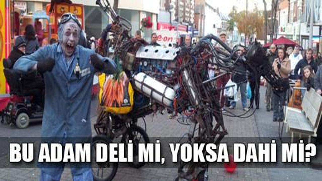 İngiltere’nin başkenti Londra’nın güney semti Sutton’ın en işlek caddesinde kendisine “tımarhaneden kaçmış” dedirtecek kadar "çılgın bilgin" görüntüsü veren adamın, ‘demir at’ıyla yaptığı şov izleyenlerin büyük ilgisini çekti.