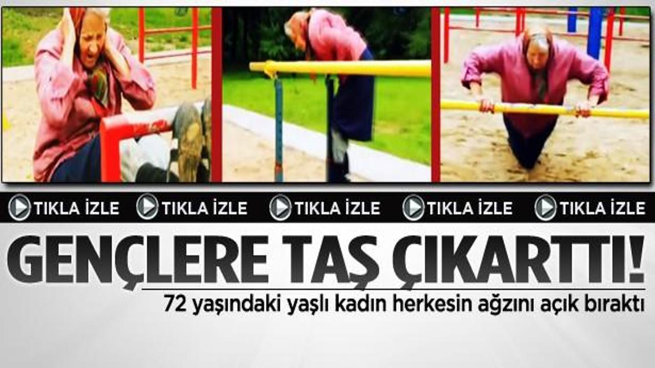 Rusya'da 72 yaşındaki yaşlı bir kadın parkta yaptığı mekik, şınav ve barfiks gibi spor hareketleriyle gençlere taş çıkarttı.